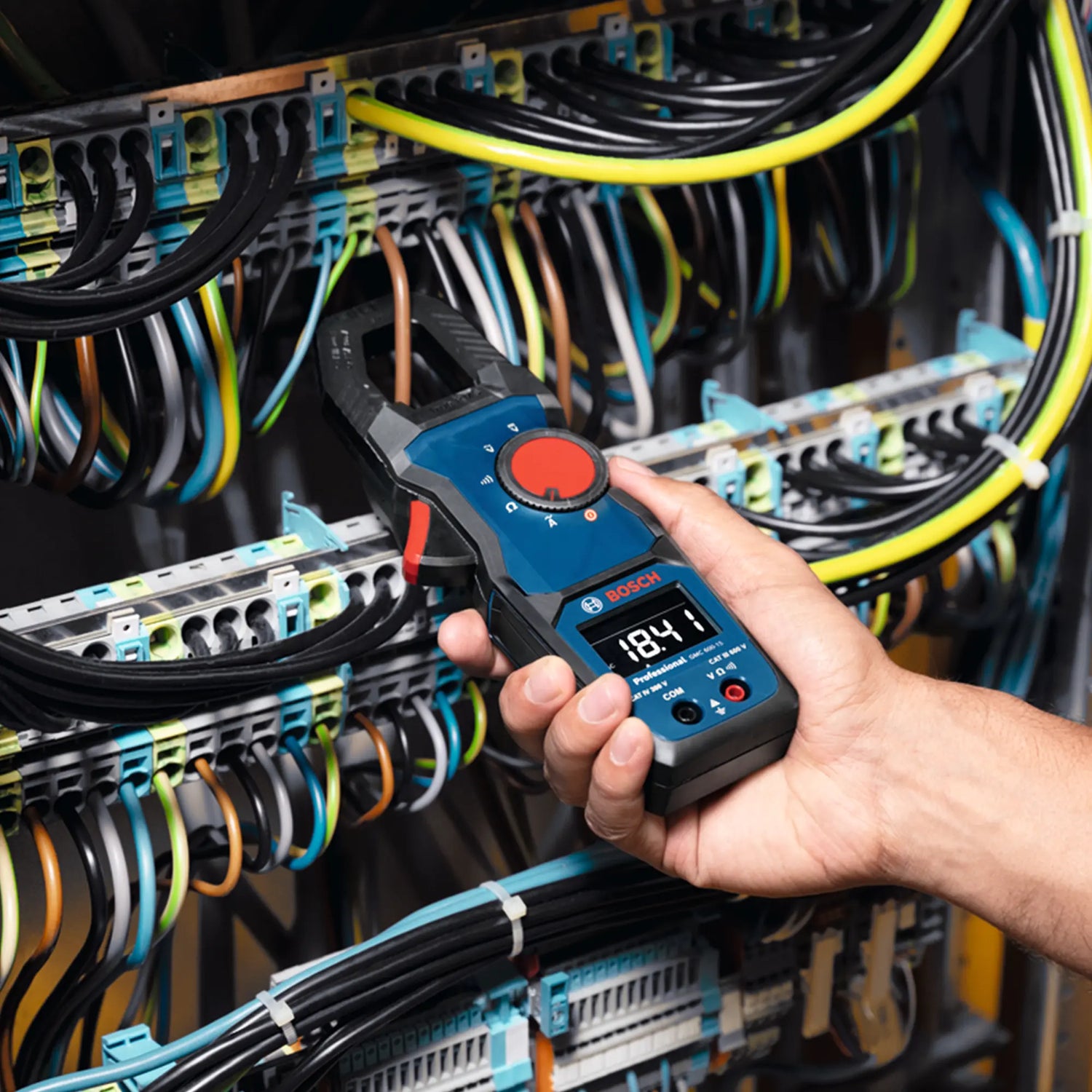 The Current Clamp Bosch GMC 600-15 Efficient and robust True RMS with inverted LCD display for accurate readings.