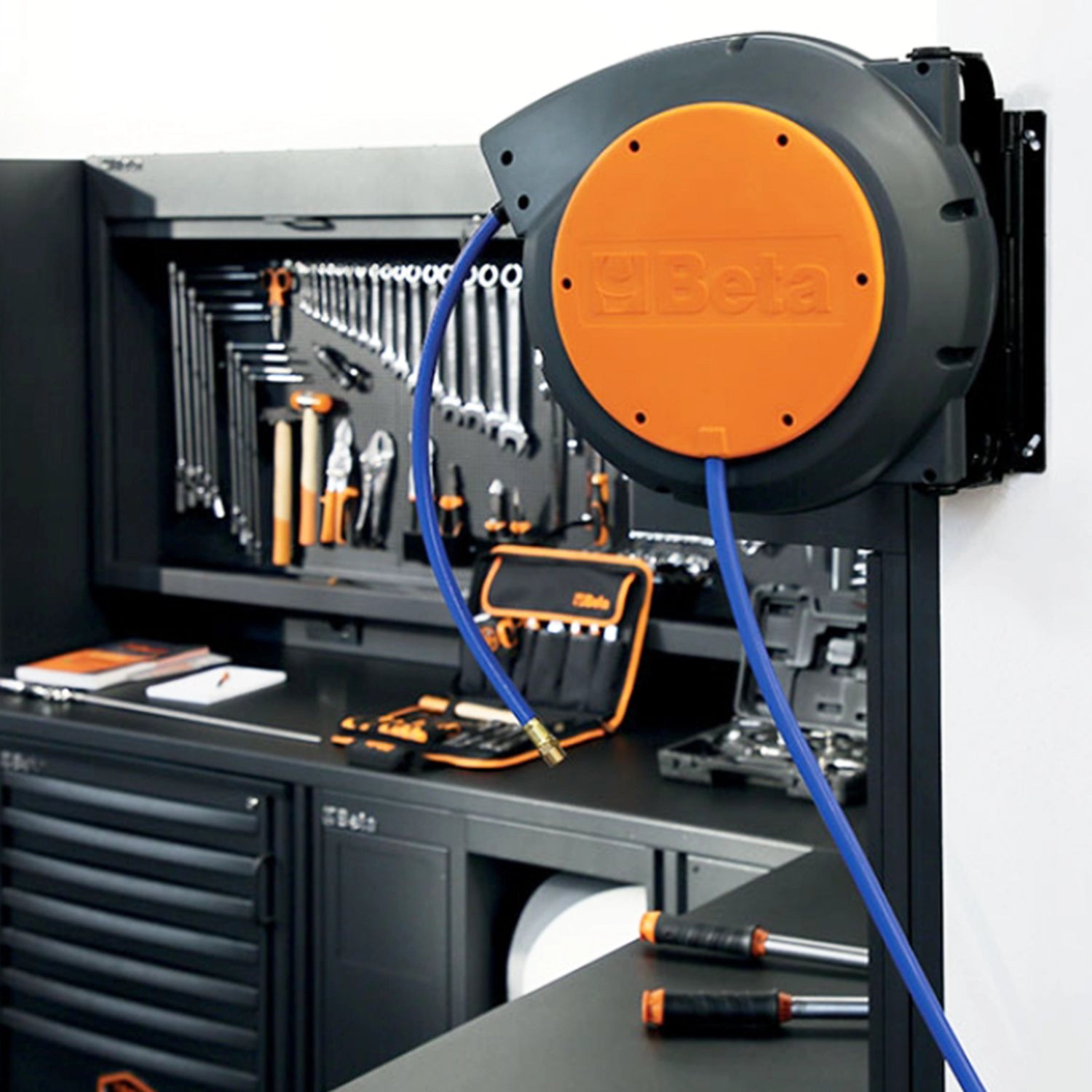 THE'Hose reel Beta 1900S It is perfect for those looking for a professional product to manage air or water safely and efficiently. Ideal for workshops, garages and industrial environments, this hose reel offers high performance and a resistant structure, ensuring long life and maximum ease of use.