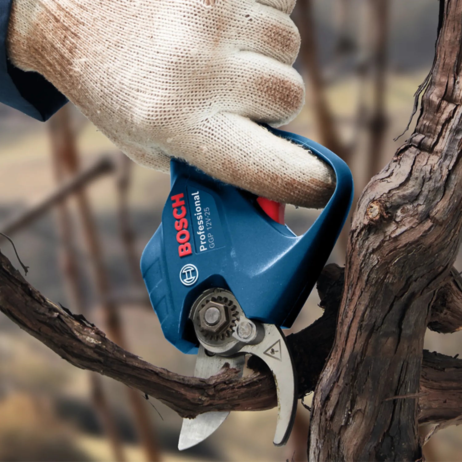 Pruning Shears Bosch GGP 12V-25 3Ah, the technology applied to this machine allows for the achievement of extremely high performance, the use of high-quality steel blades allow for quick and precise cuts to safeguard the health of the plant.
