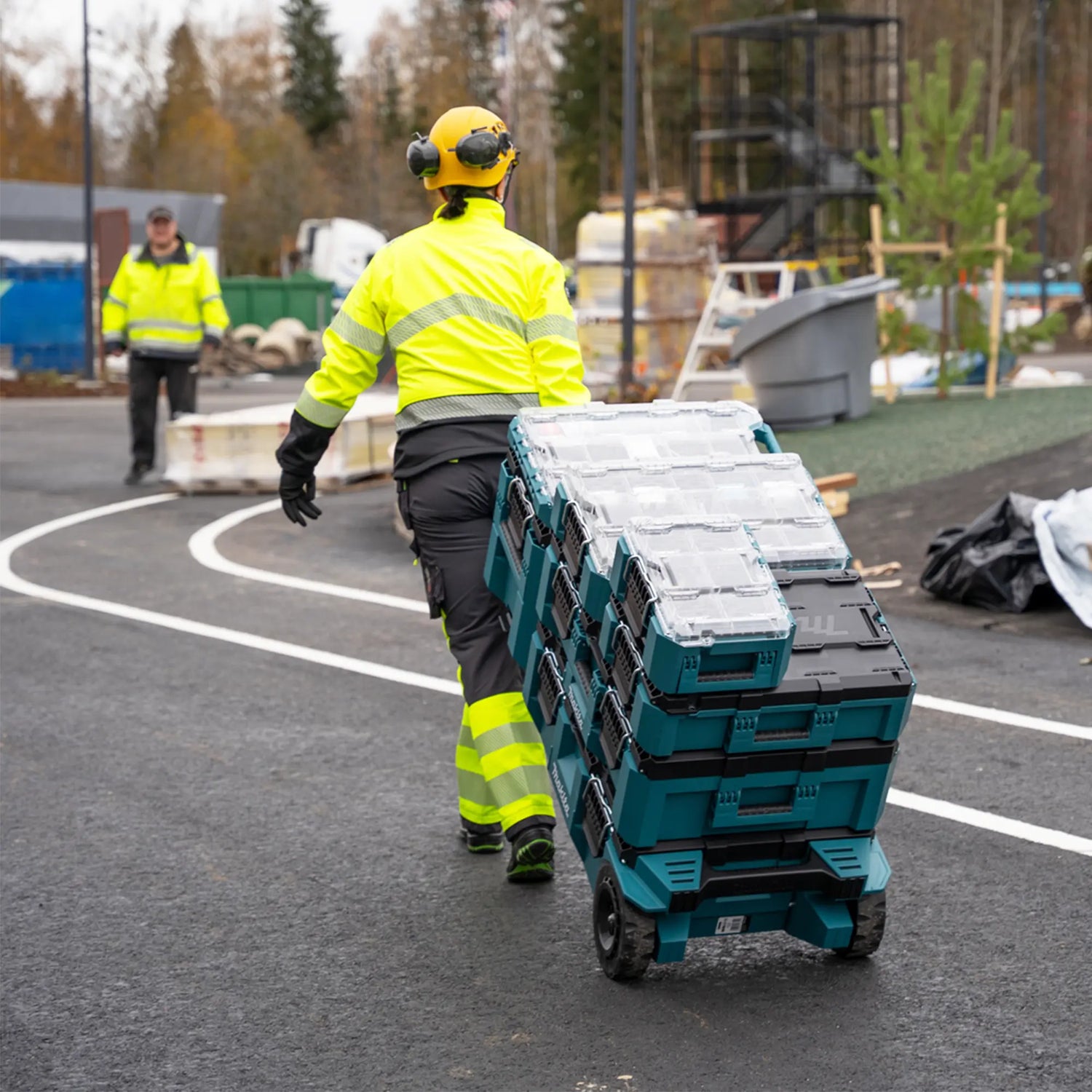 The Maktrak Organizer Trolley Makita P-91001 It is ideal for taking to the construction site with a load capacity of up to 113kg.