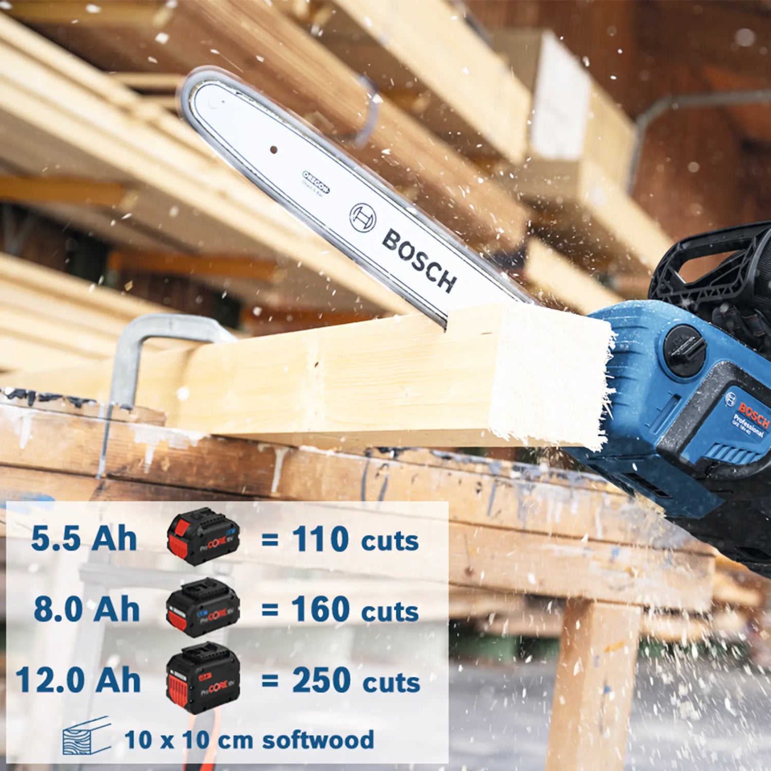The Chainsaw Bosch GKE 18V-40Powerful 18V brushless chain saw for a wide range of applications.