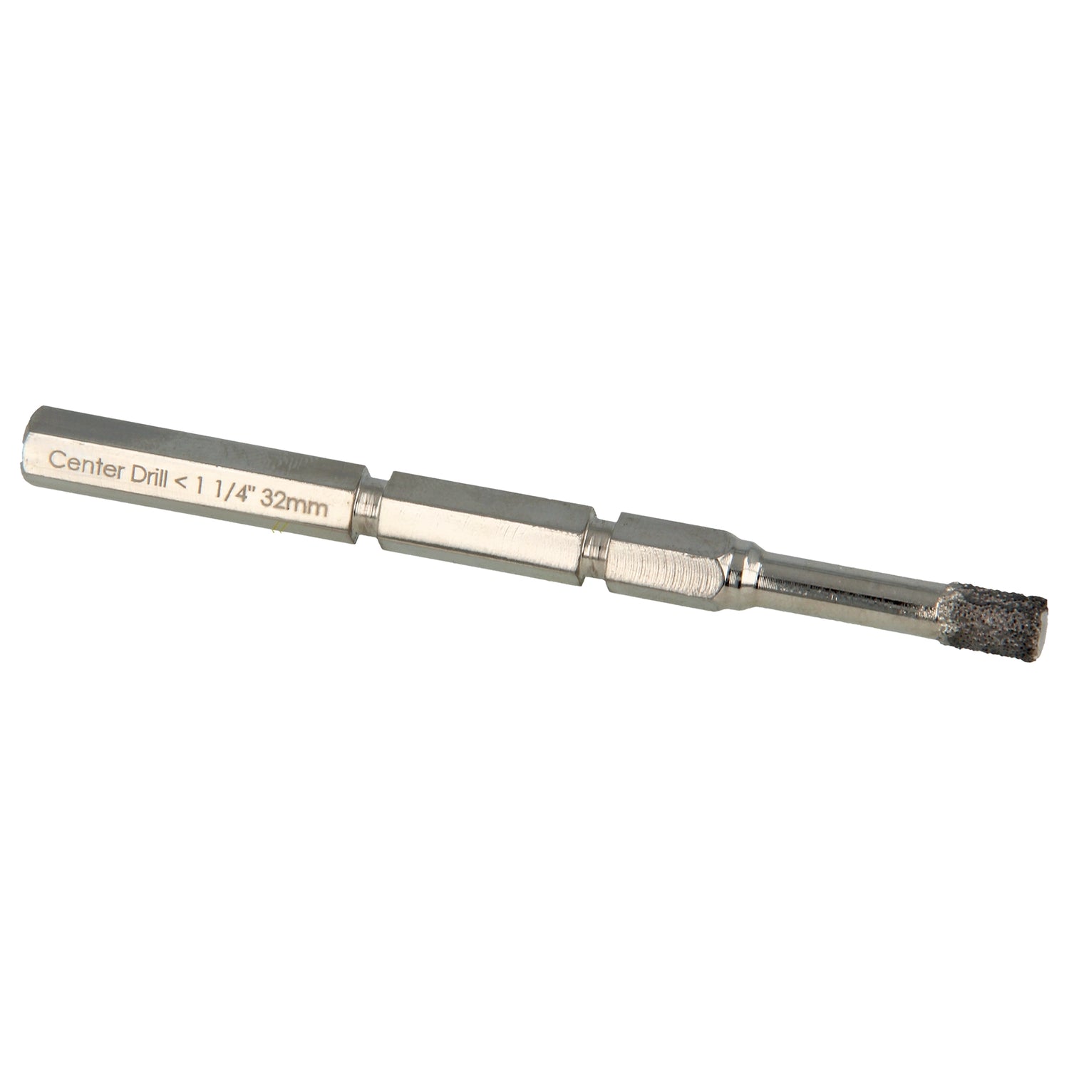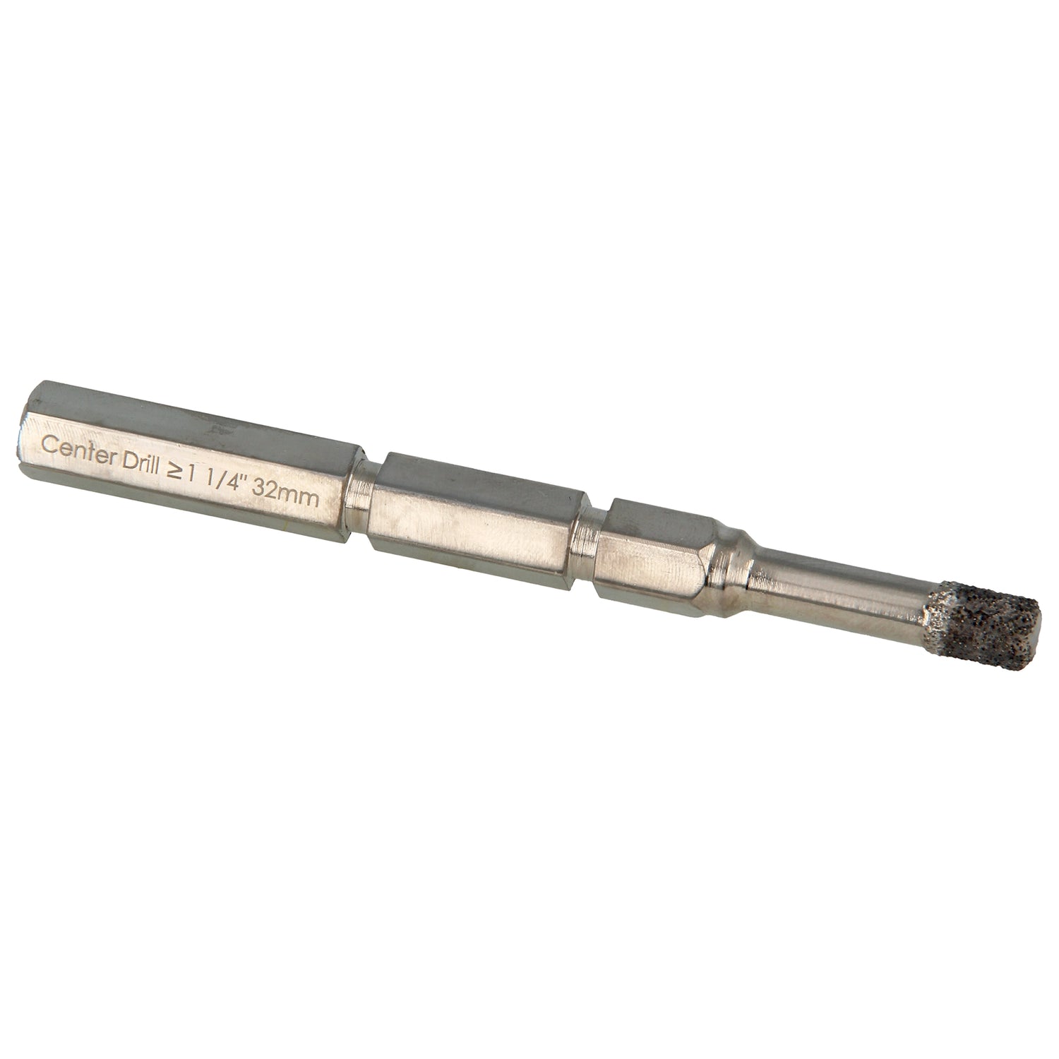 Centering tip ProFit Hex with hexagon shank Click & Drill for 18-30 mm cutters For use in ceramic tiles, porcelain stoneware, granite and marble. Pre-drill a hole with 6 mm dry diamond to guide the smooth centering tip.
