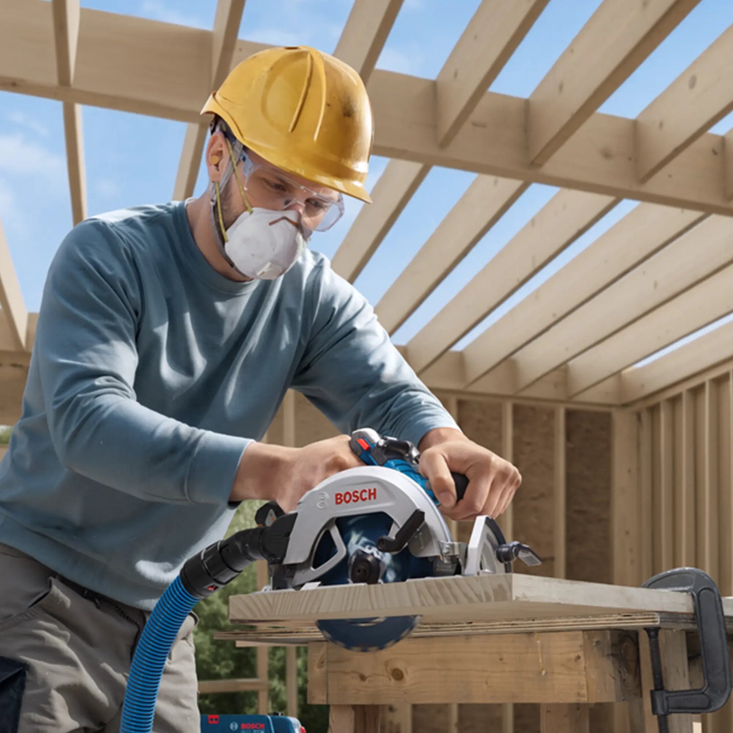 There Bosch GKS 18V-68-2 PRO It combines the power equivalent to a 1400W corded saw with the convenience of battery technology, ensuring precise and safe cuts thanks to the brushless motor and intelligent braking system.