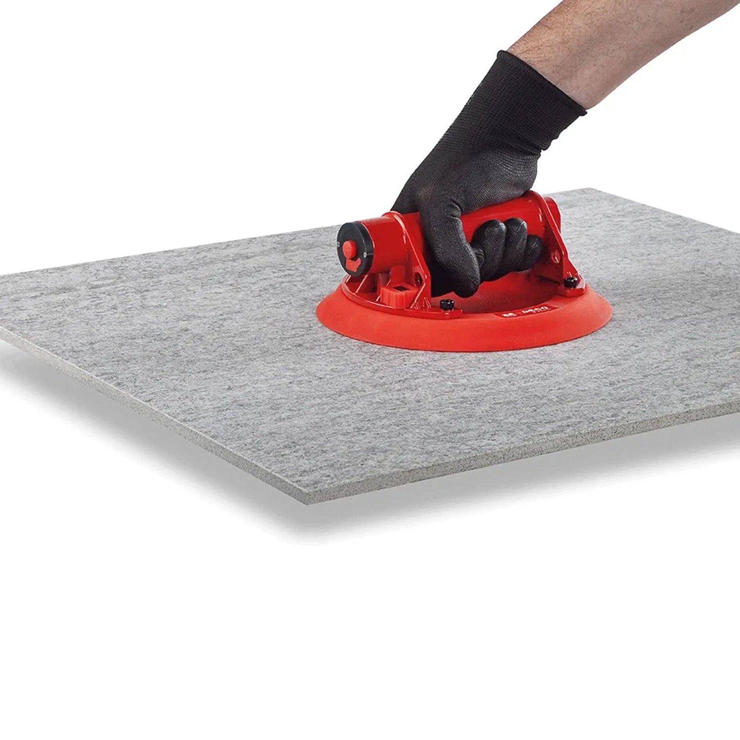 There Suction cup Montolit Gecko E-Power It is the ideal professional solution for those who work every day with large formats in ceramic, glass, marble or porcelain stoneware. Thanks to its battery power supply and automatic vacuum maintenance technology, it guarantees constant and safe grip up to 100 kg, minimising risks during handling and installation.