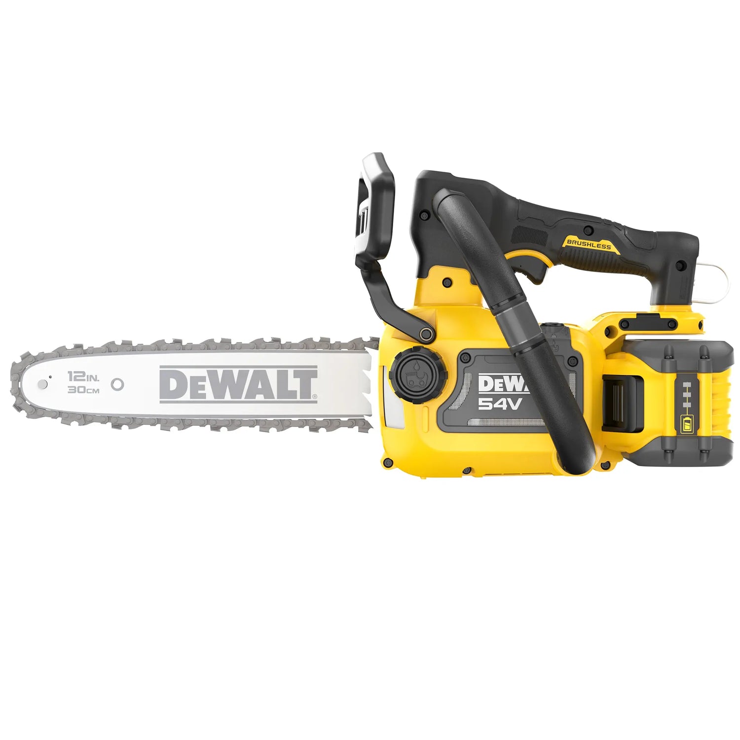 The Electric Saw Dewalt DCMCST632 54V with 30cm bar and a weight of 3.1kg.