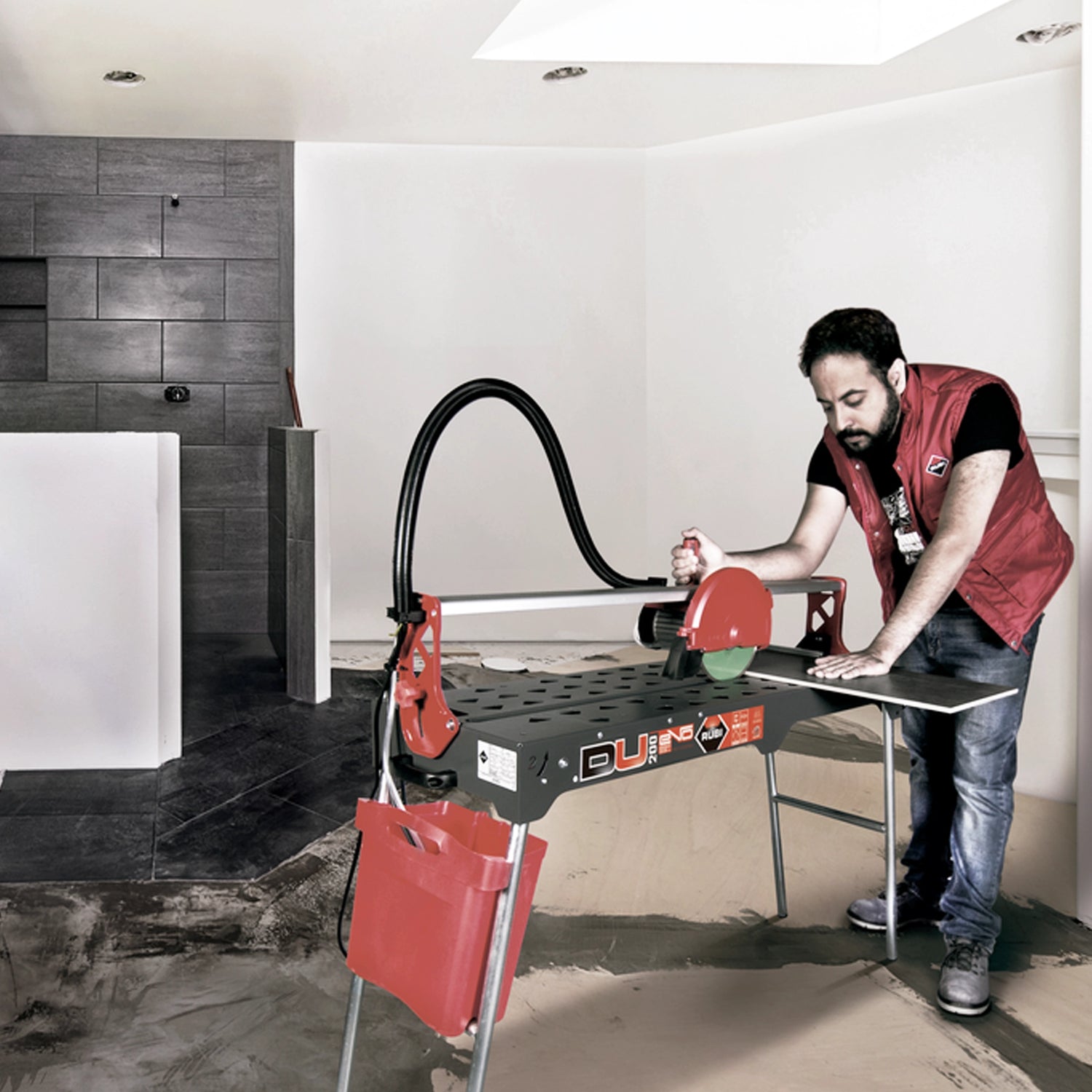 The Electric Tile Cutter Rubi DU-200 EVO 850 It is the ideal power tool for those who carry out renovation and light finishing work in the ceramic field. Designed for precision and comfort, it is perfect for cutting ceramic tiles and similar materials quickly and efficiently.