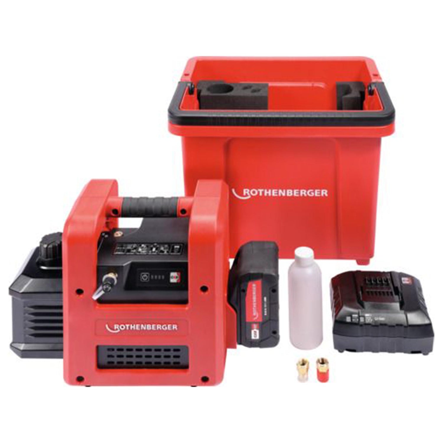Vacuum pump Rothenberger R32 5.0 CL, ideal for use on construction sites and in places where there is no electricity. From today, with the new battery-powered vacuum pumps, it is possible to work up to 90 minutes on a single charge.