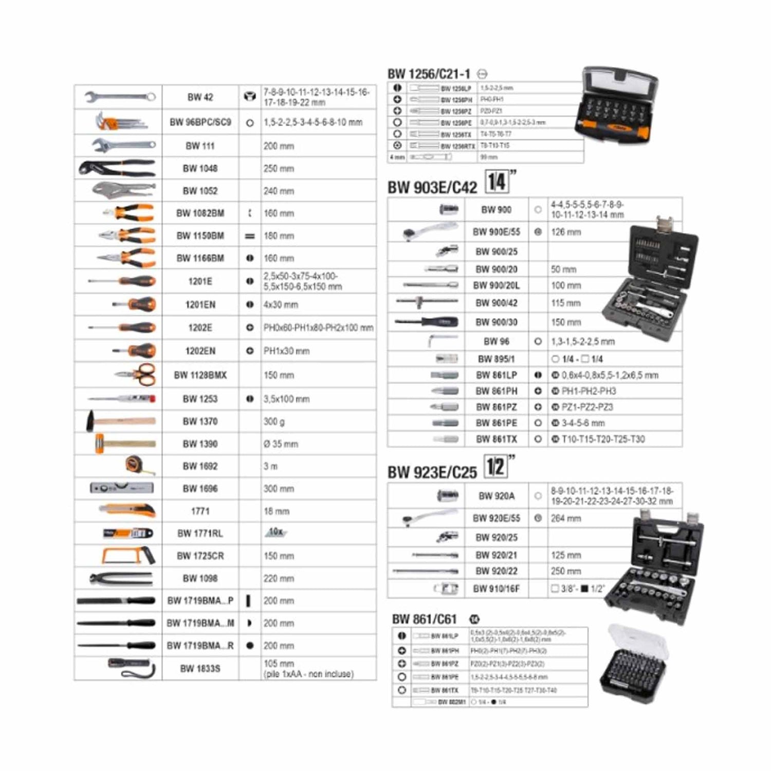 The Tool Trolley Beta BW 4300E/21, with good 212 tools included, represents the ultimate solution for those who want a complete, organized and always ready to use set. Designed to meet the needs of professionals and craftsmen, this trolley is equipped with a wide range of high quality tools, all housed in a robust and practical system.
