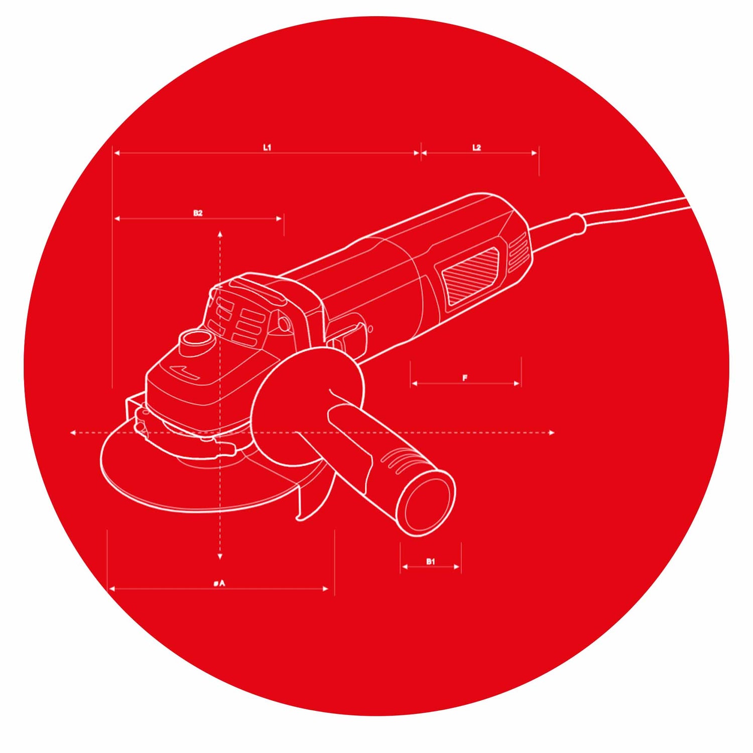 Angle Grinder Flex L 1400 1400W, microprocessor for progressive start-up of the machine, lock against restarts after power failure, temperature control, electronics with speed stabilization.