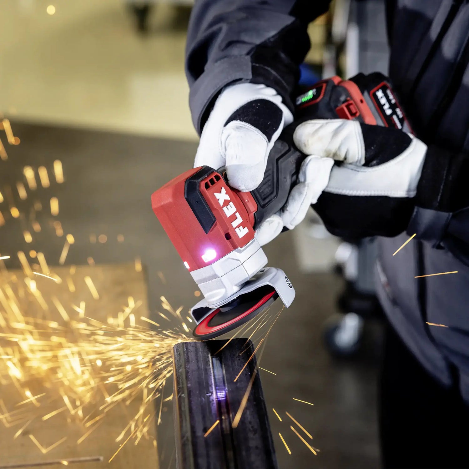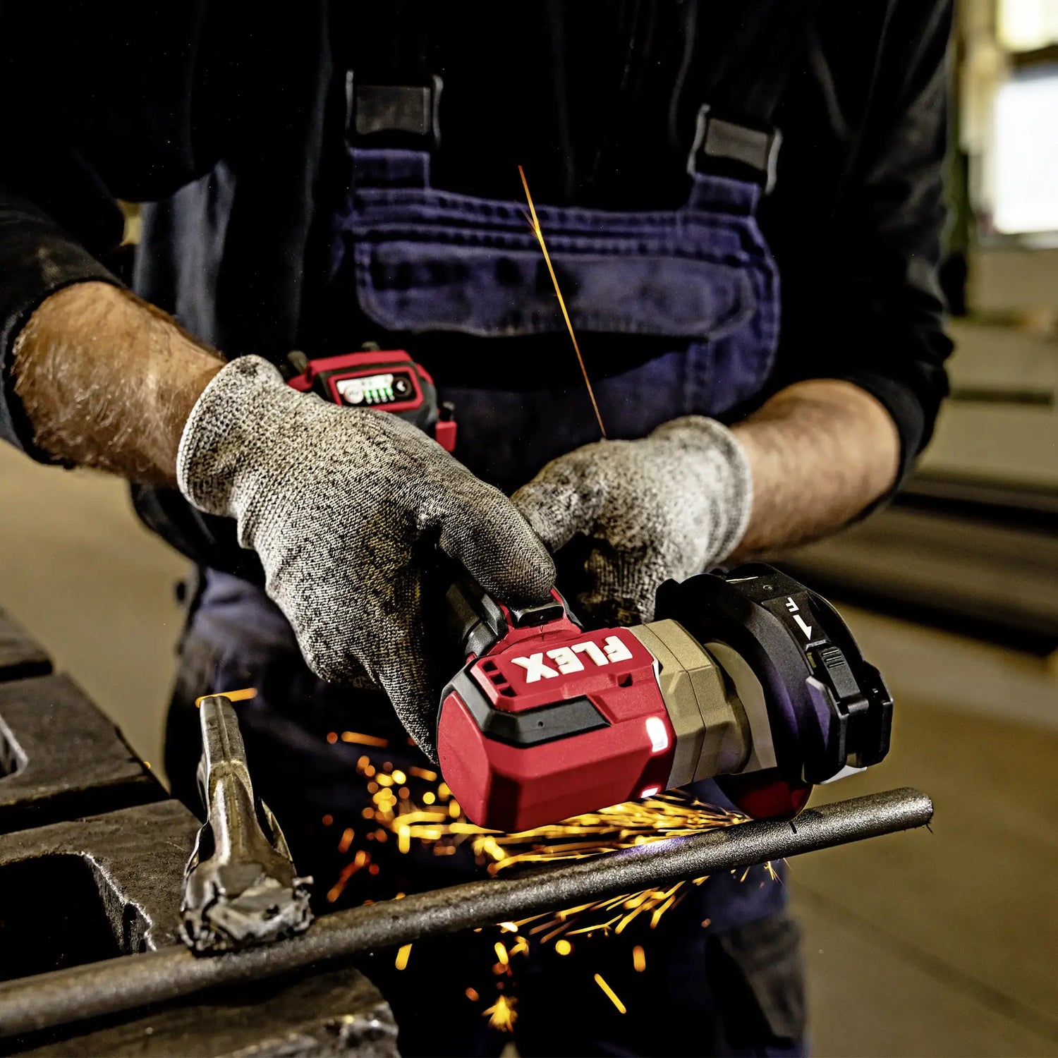 Angle grinder Flex LBE 125 18V EC C Battery-powered, variable-speed, 18.0 V, 125 mm drill with brake. The Electronic Management System (EMS) protects the machine, extending its lifespan and increasing its efficiency.