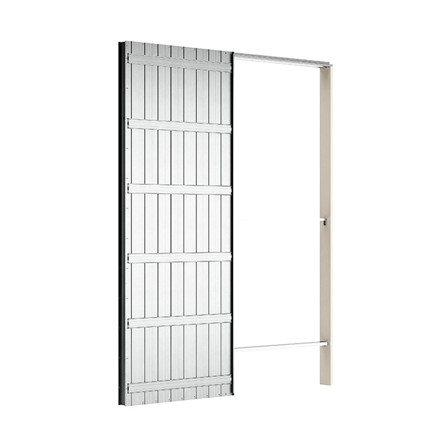 • Cart Kit: Equipped with 2 4-wheel trolleys on ball bearings, nylon lower guide and nylon limit switch for adjusting the door closing.