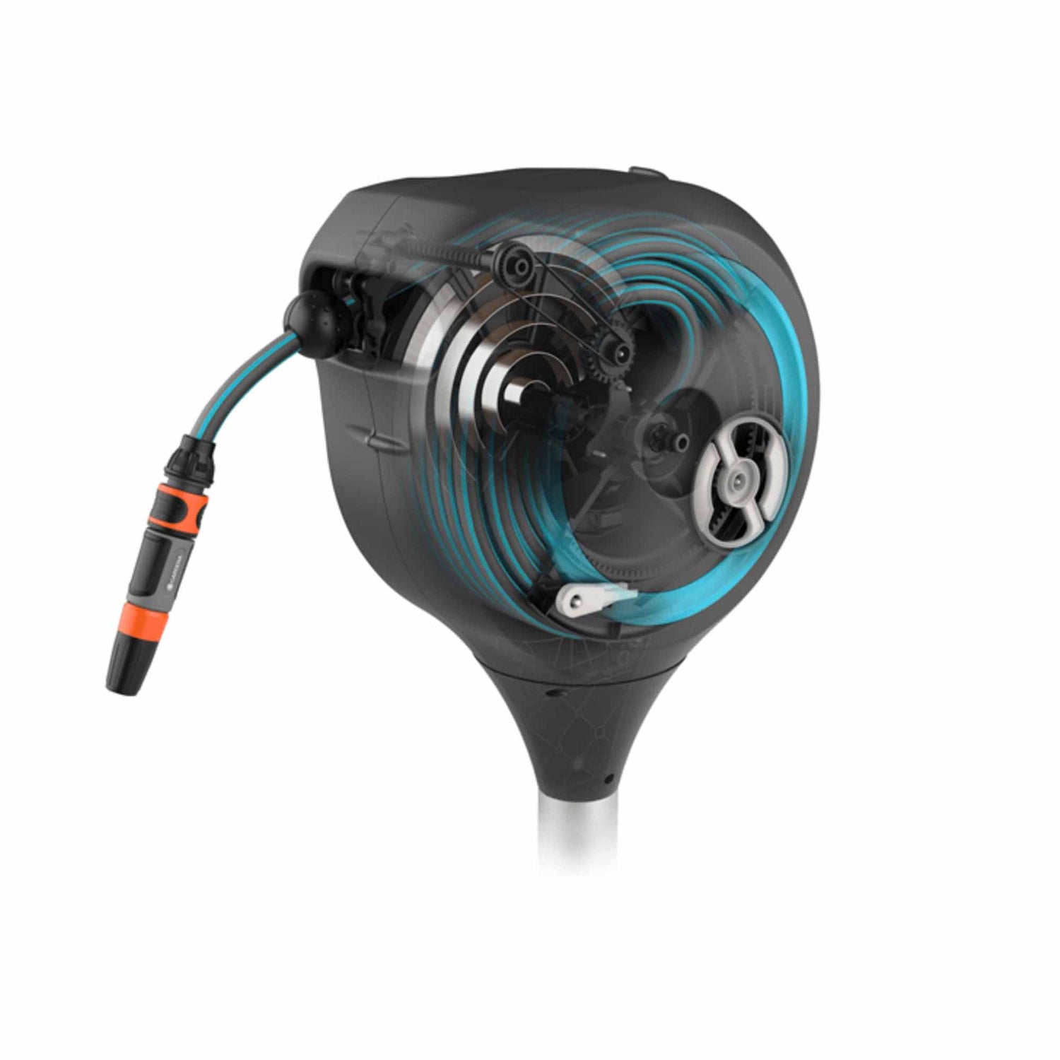 • Automatic rolling: The hose rewinds automatically thanks to a steel spring, effortlessly and reliably.