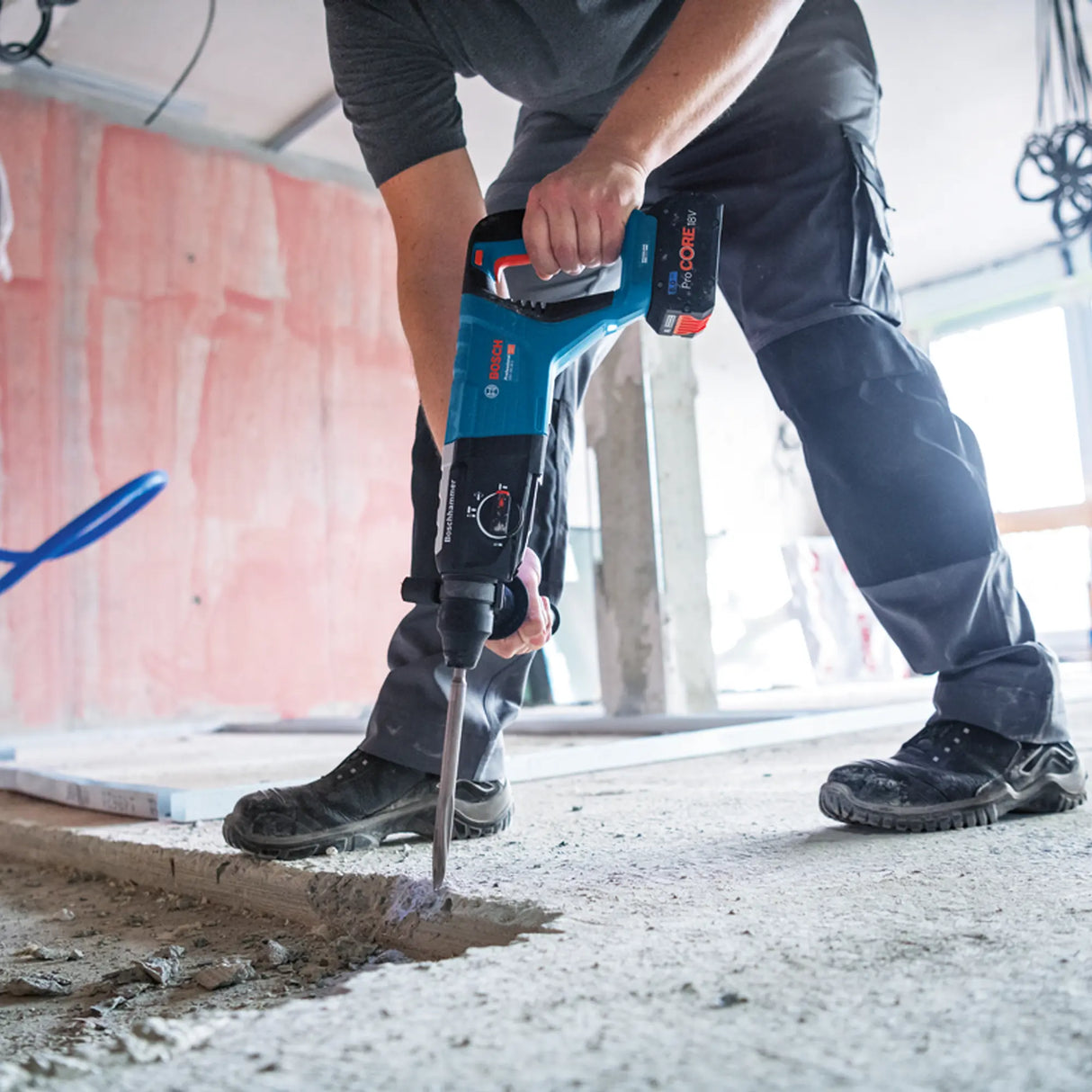 The Cordless Hammer Drill Bosch GBH 18V-28 D is designed to deliver exceptional performance in professional drilling and chiselling applications. Thanks to its brushless motor, this tool delivers a 3.4 Joule impact force, exceeding the performance of the GBH 2-28 corded model.