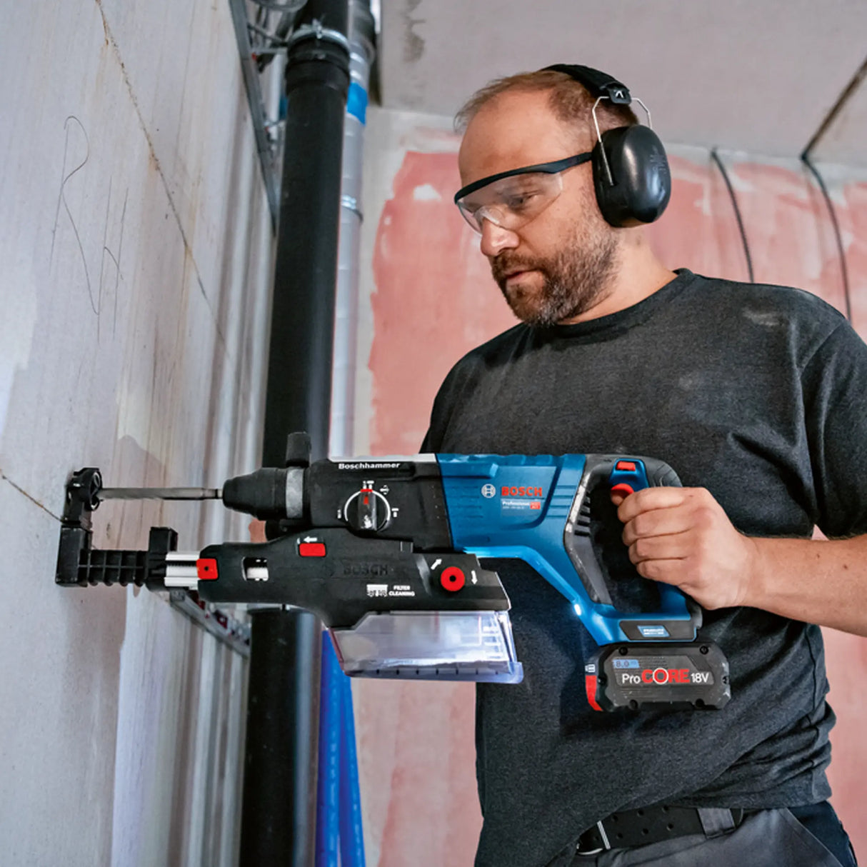 Compatibility with Suction Systems: It is compatible with the optional GDE 28 D dust extractor, which enables dust-free drilling, keeping the work area clean.