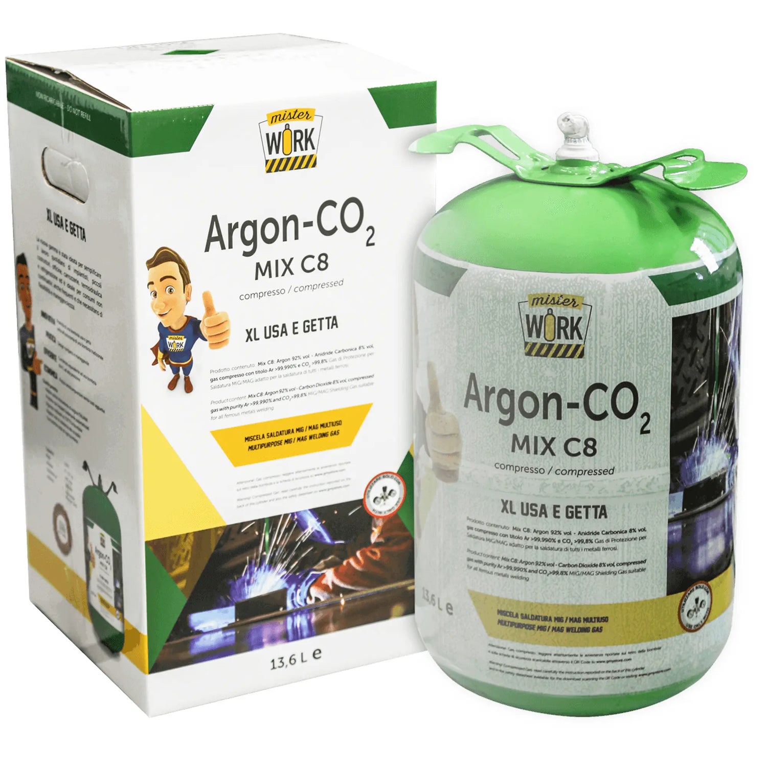 There Cylinder Mix C8 Helvi Misterwork 14lt And a solution disposable perfect for MIG welding on carbon steel and mild steel.