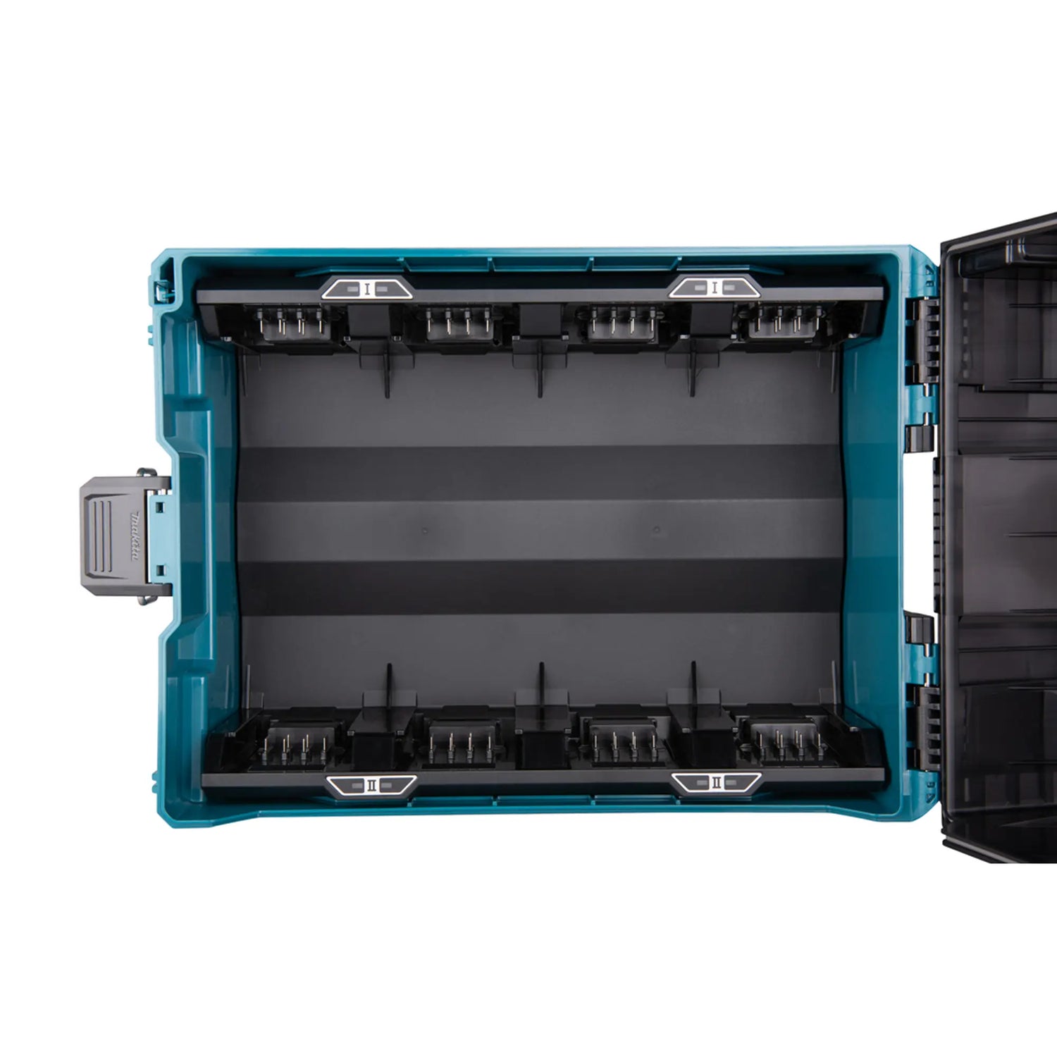 Designed to handle up to 8 XGT 40V batteries, it also offers compatibility with LXT 18V batteries using the optional ADP10 adapter. Its compact and robust structure, inspired by the MAKPAC system, makes it easily transportable and suitable for various work environments.