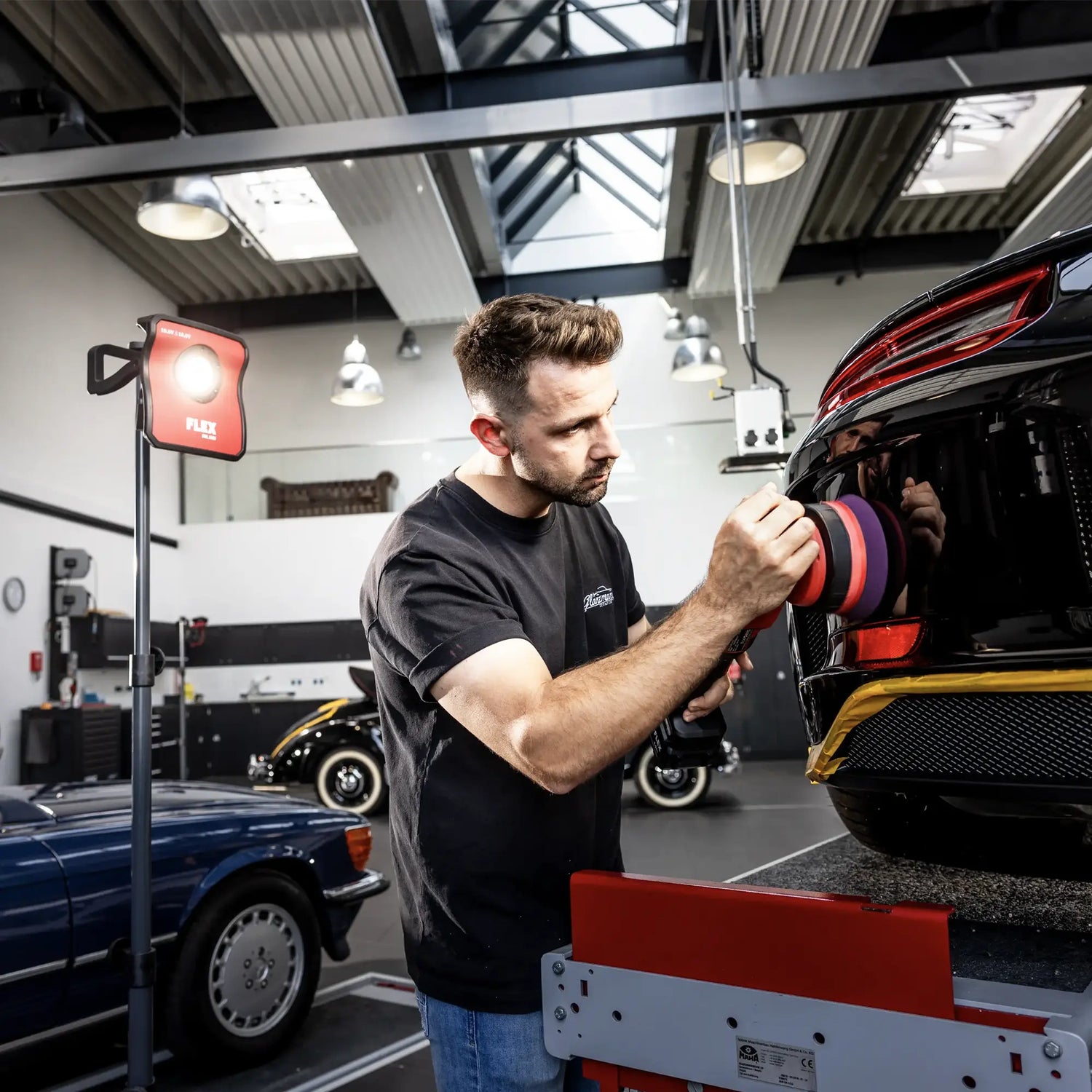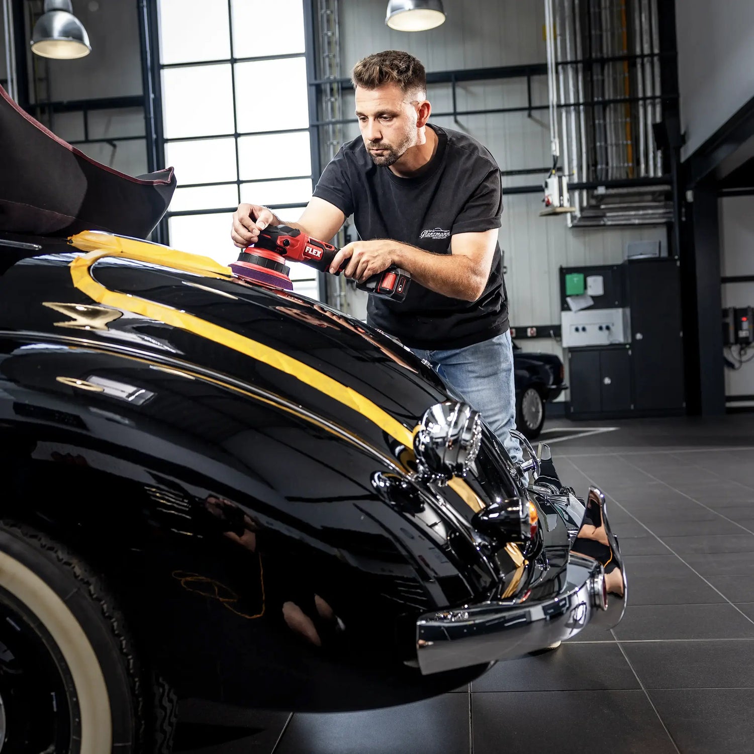 There Flex XCE 2 8 EC C 18V is designed for the removal of medium-sized scratches, wear marks and holograms in the automotive, marine and aeronautical sectors. Thanks to the forced rotation with roto-orbital movement, it ensures maximum efficiency in a single pass with the system FLEX 1-stage, offering precise control even on delicate surfaces.