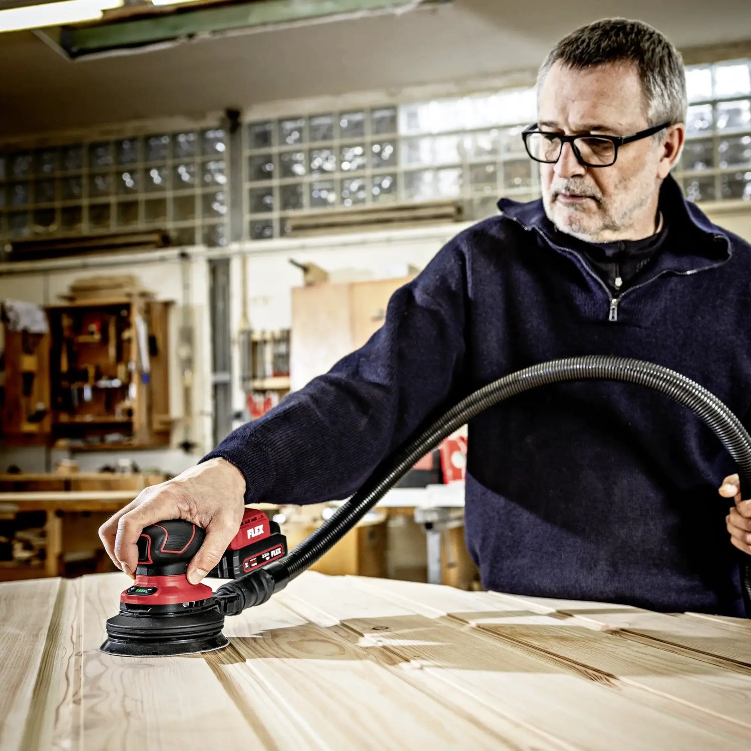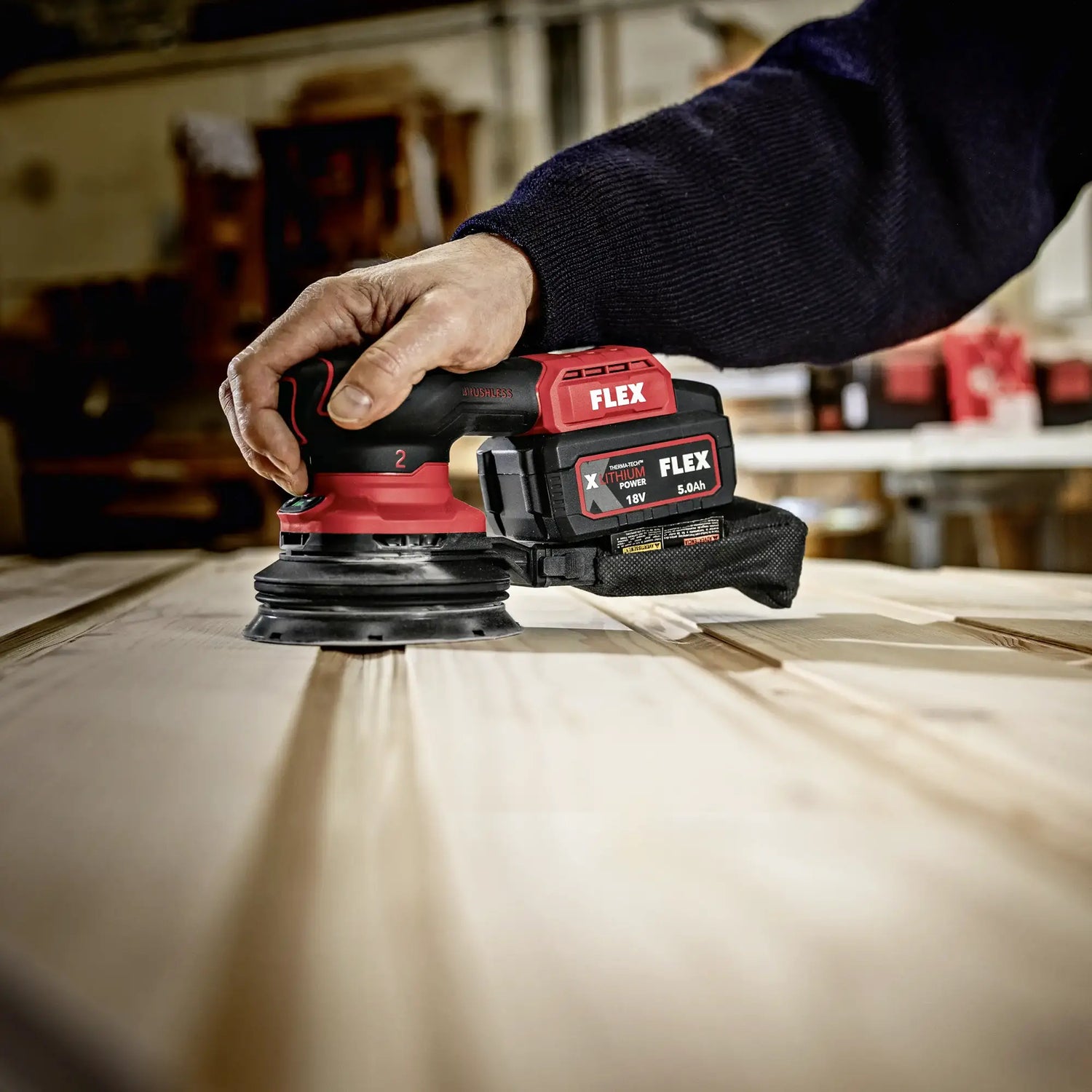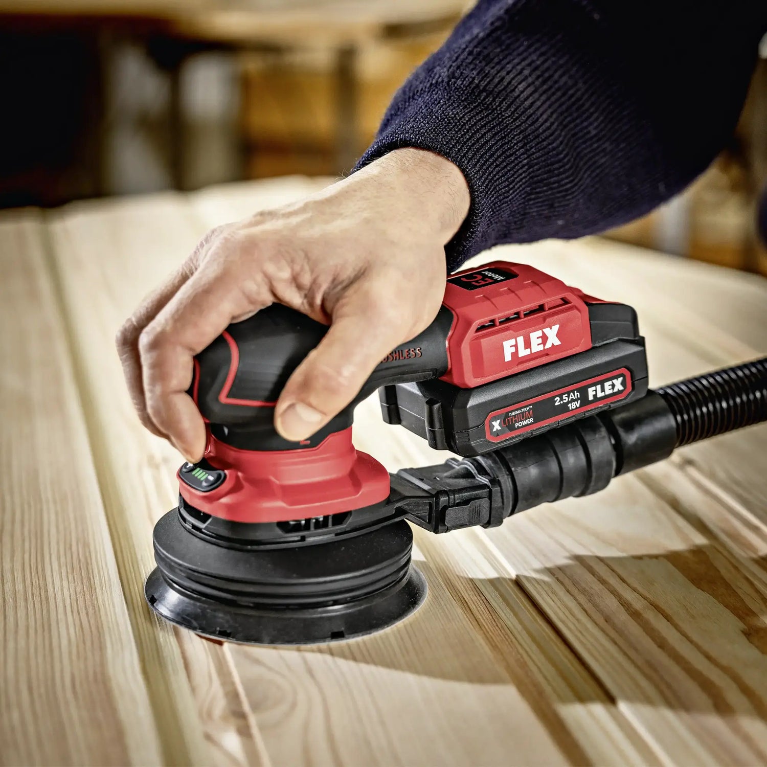 There Flex ORE 2-125 18-EC C unites advanced ergonomics, sanding precision and cordless operating freedom, offering high performance and comfort even during longer jobs.