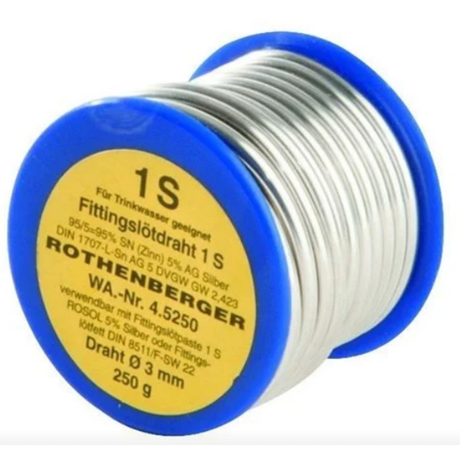 Tin spools Rothenberger 1S 3mm 250g, excellent melting and fluxing properties. Conforms to ISO 9453 standards.
