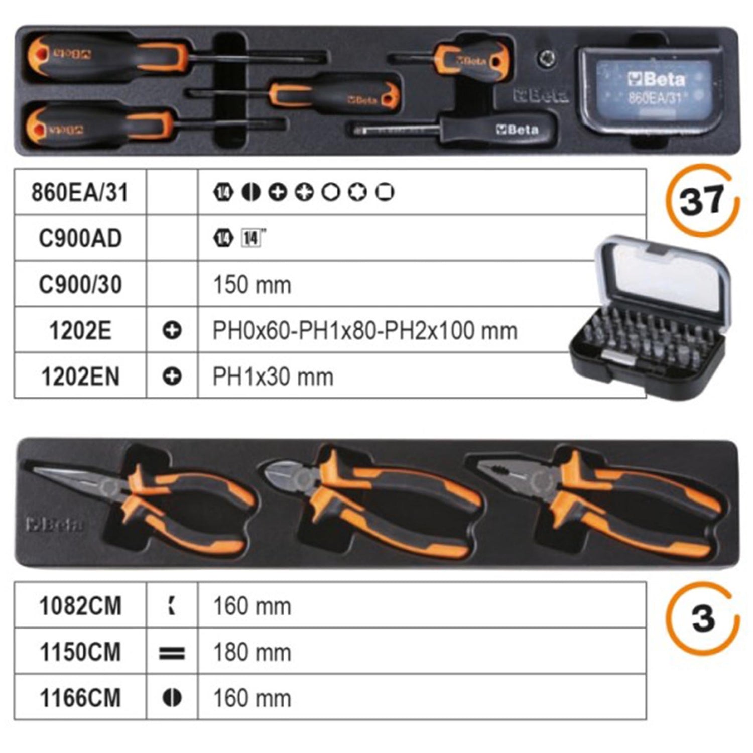 • Optimal organization: The tools are stored in a rigid ABS thermoformed tray, ensuring easy access and perfect organization.
