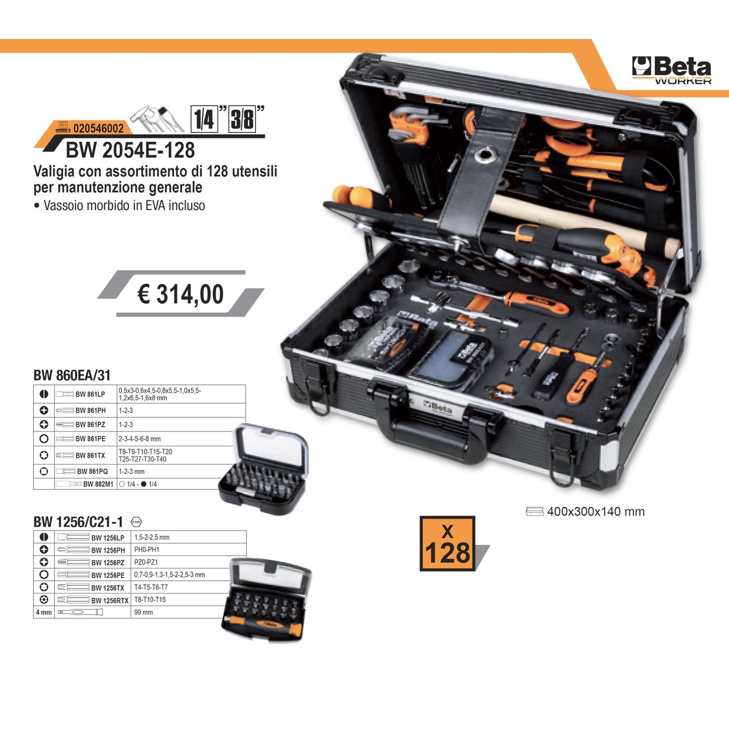 The Tool Cases Beta 2054E 100 and BW 2054E-128 are the ideal kit for those looking for a complete assortment of tools for maintenance of all types. With a choice between the model from 100 or from 128 tools, both sets are designed to meet the needs of professionals and DIY enthusiasts, ensuring order, safety and accessibility in every situation.