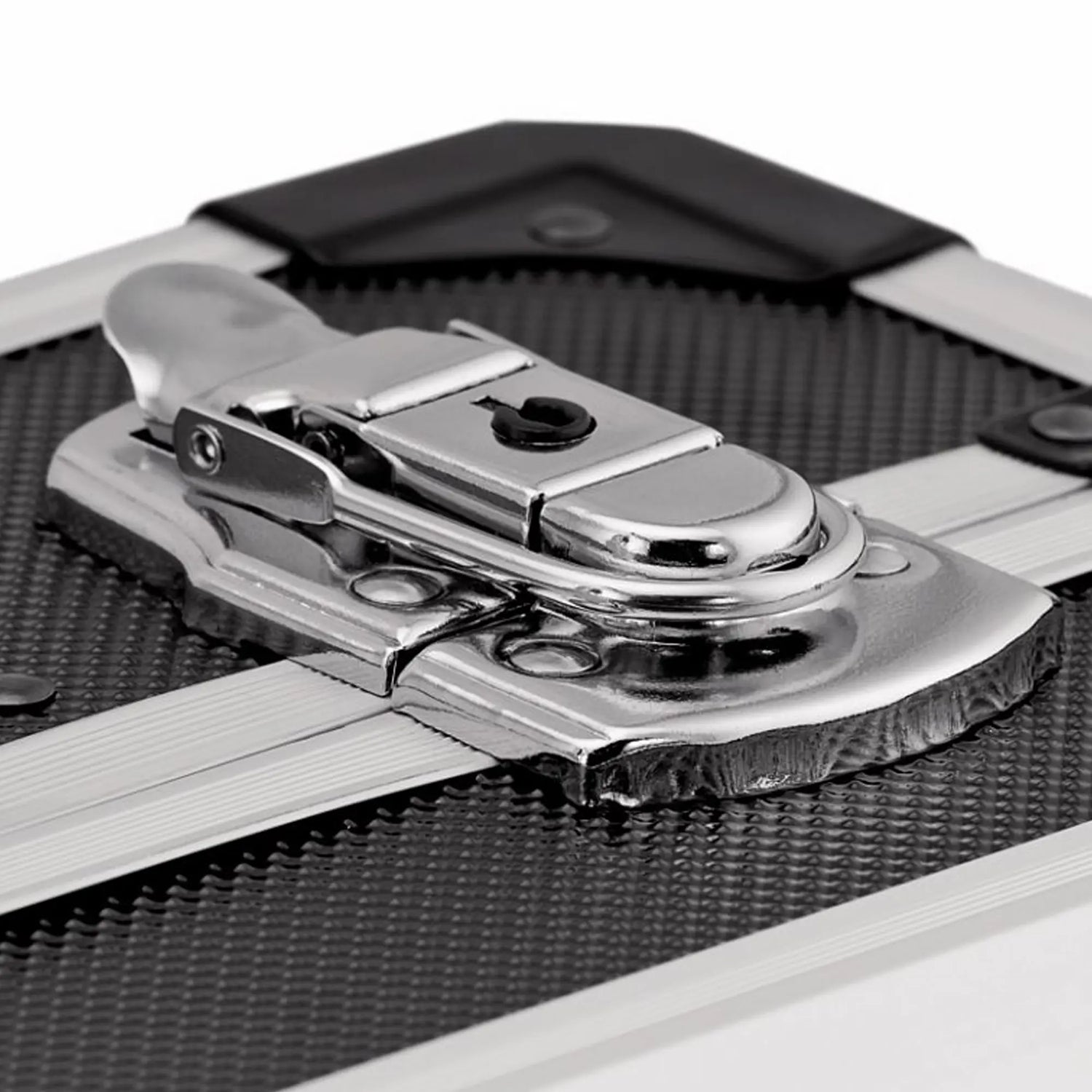 Aluminum case – Sturdy, with locks, handle and tool holder panels with elastic bands