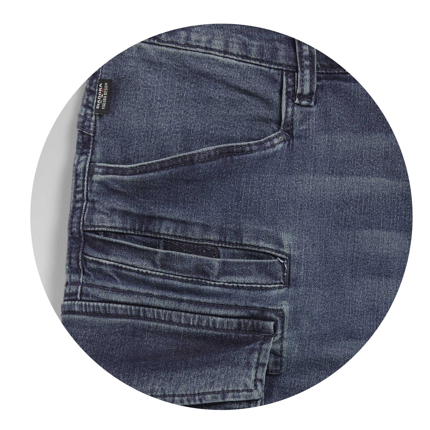 Trousers Diadora Stone Cargo Light, lightweight cargo denim, stone washed, stretch.