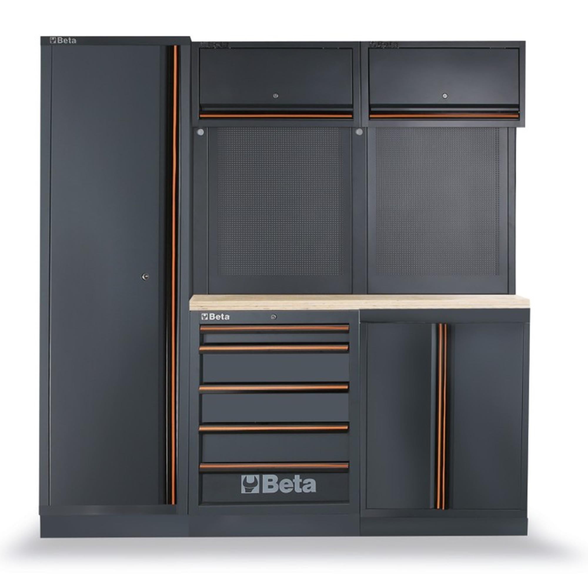 Workshop furniture Beta C45PRO 2.0 BW, Consisting of a large number of compartments. With a wooden shelf.